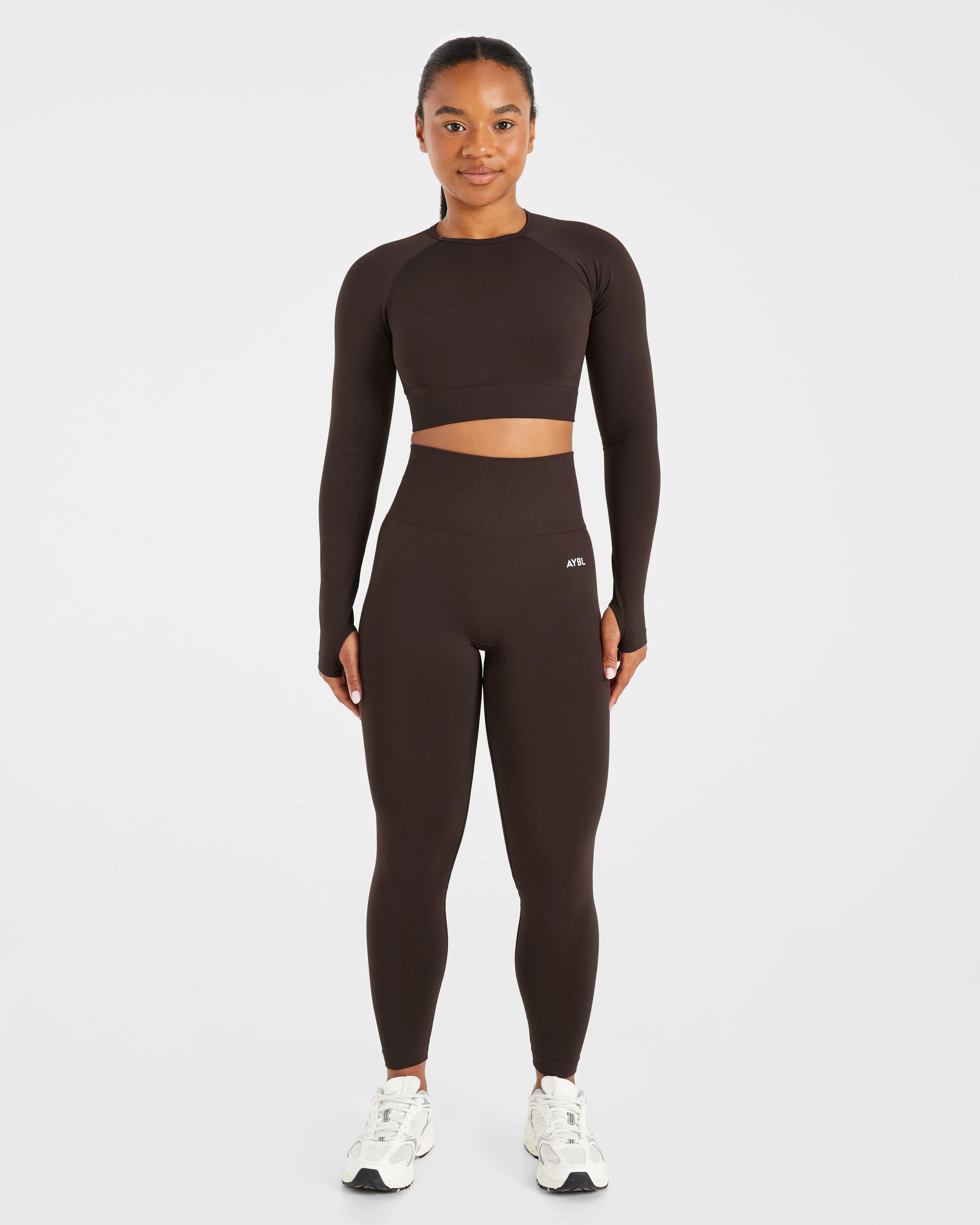 Empower Seamless Long Sleeve Crop Top - Cocoa Bruin